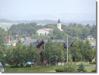 ・・・雄大な自然の中に先のとがったおしゃれな建物が美馬牛小学校。美しい自然にマッチしていてセンスの良さが感じられる。